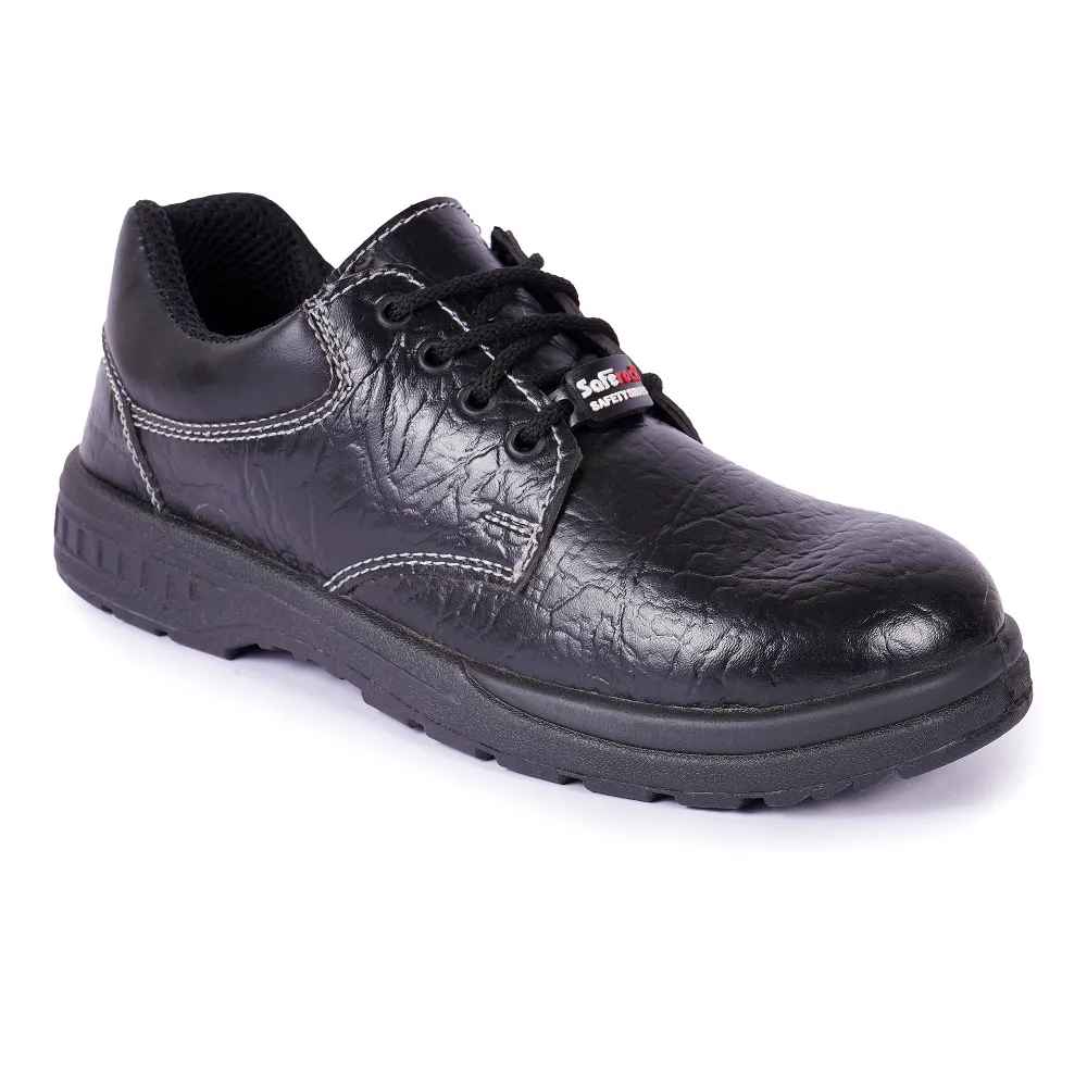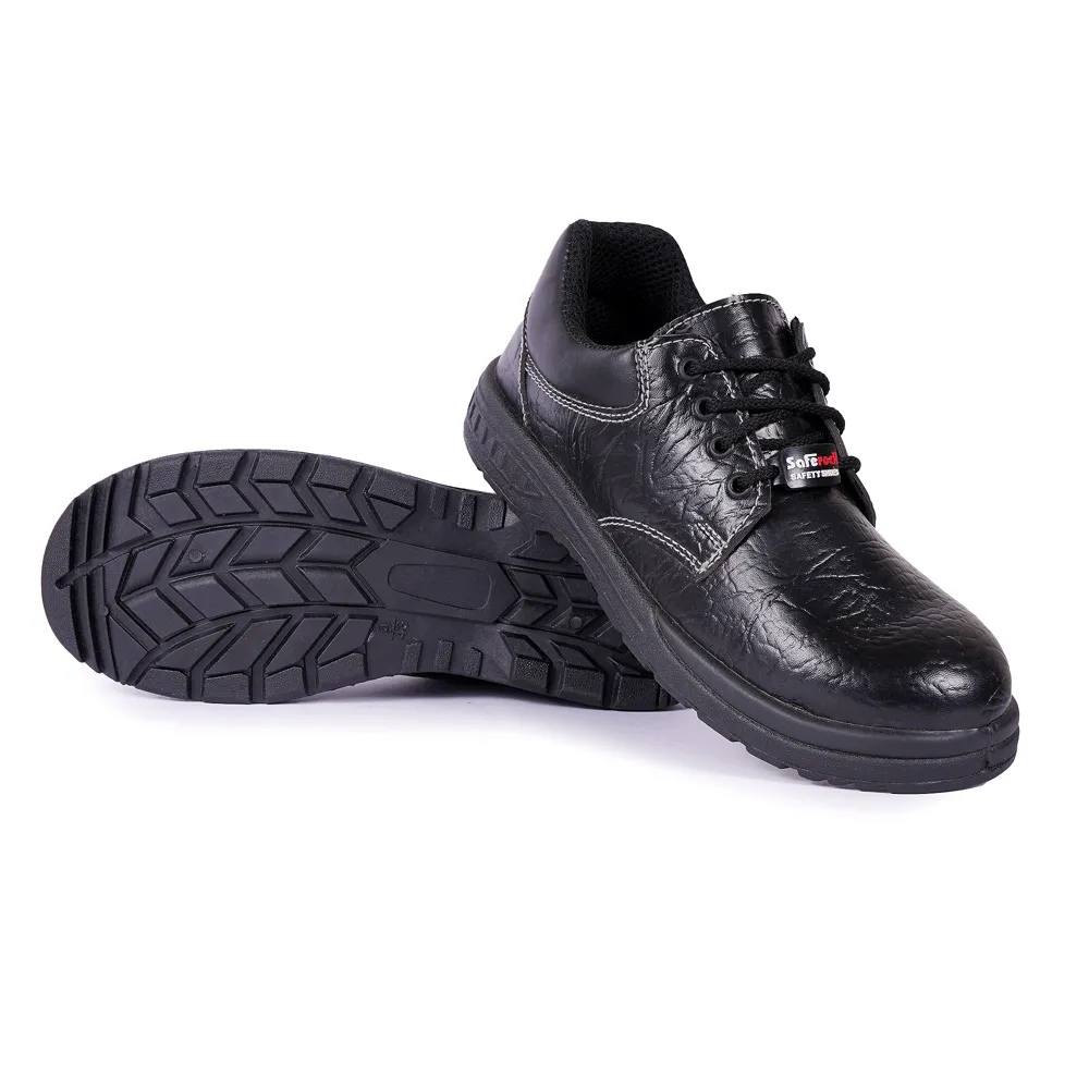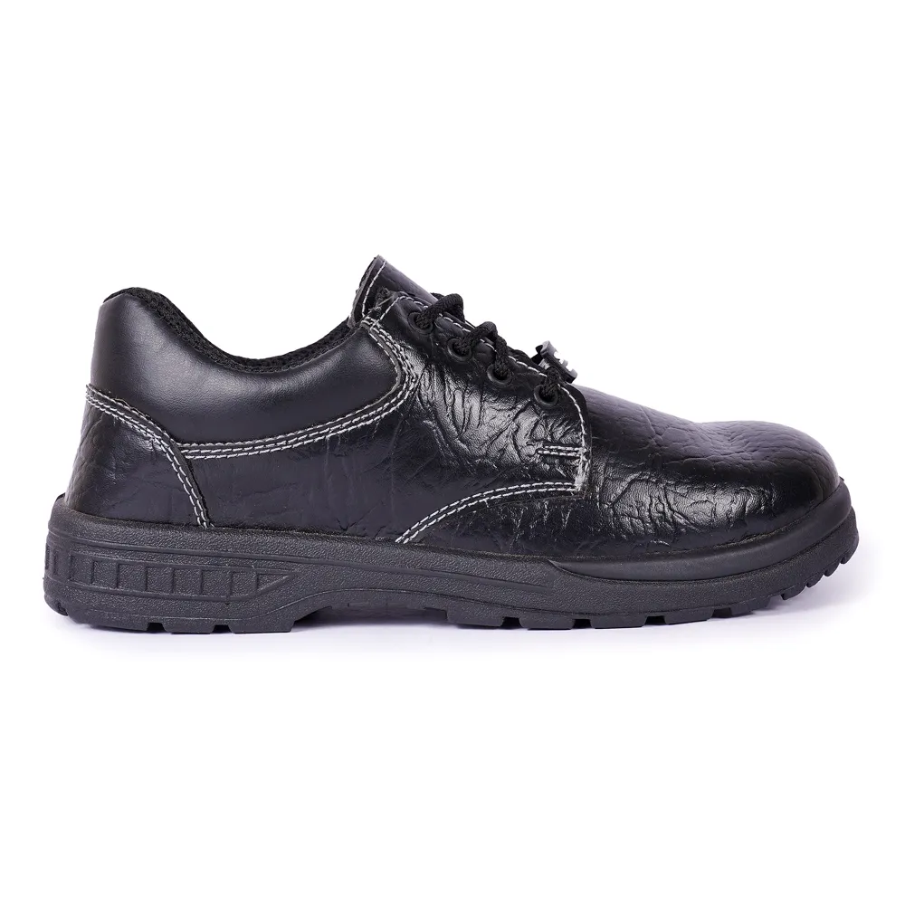 Low ankle safety boots with a steel toe cap, anti-fungal insole, and slip-resistant sole for industrial protection.